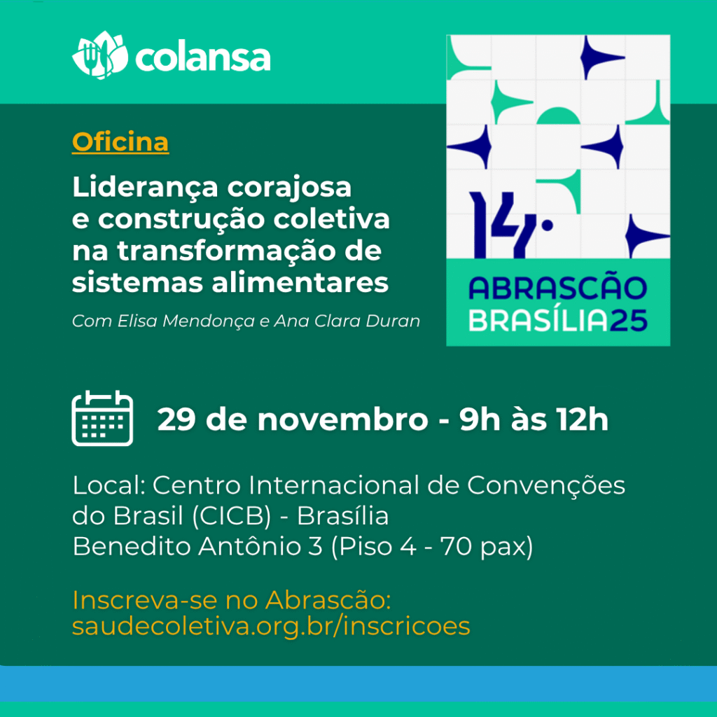 Esta oficina, desenvolvida em parceria entre Colansa e Next Gen(D)eration Leadership Collective, tem como objetivo promover a construção coletiva de estratégias de implementação das práticas de liderança corajosas para enfrentar os desafios inerentes ao desequilíbrio de poder dos sistemas alimentares. Baseada no manifesto “”Por um mundo com dietas adequadas e saudáveis: Um manifesto para liderança”” e nas recentes evidências de como a prática de liderança corajosa contribui para atacar os desequilibrios de poder dos sistemas alimentares, e, portanto, ajudar a promover sua transformação, a oficina abordará a necessidade de transformar a forma como lideramos e quem lidera para o alcance de dietas adequadas e sistemas alimentares justos e sustentáveis.